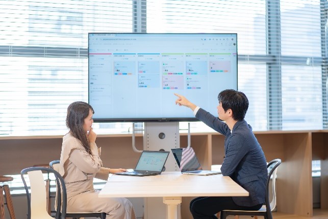 ふせんを貼るようなかんばん方式で、タスクの進捗をドラッグ&ドロップだけで視覚的に管理できます。