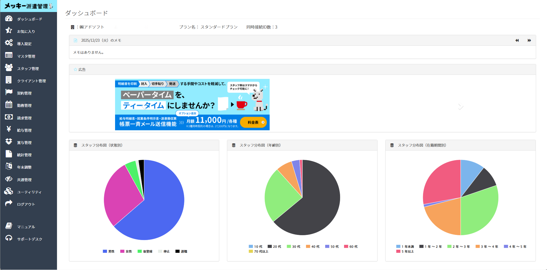 『メッキー派遣管理』は、人材派遣ビジネスを効率よくサポートする業務支援ソフトです。