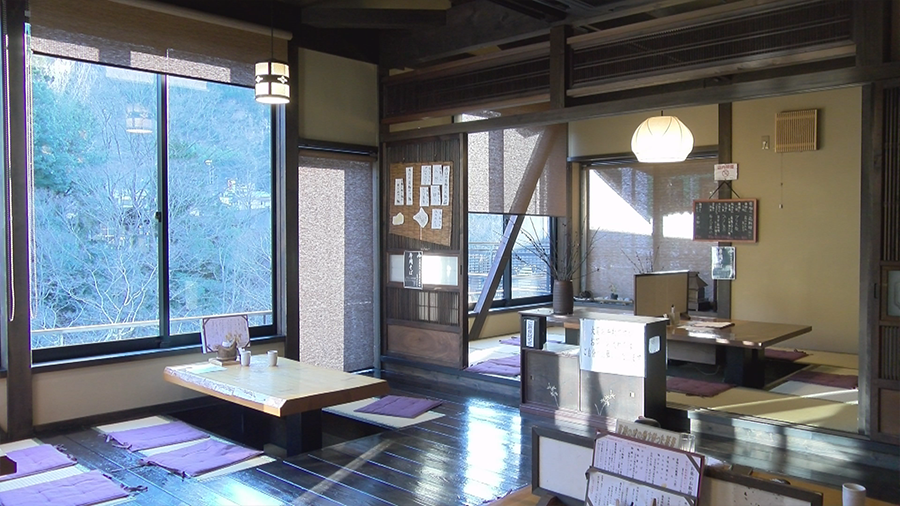 最初に修行した蕎麦屋が実家の蕎麦屋で、そこが『ごろう』という店名でした。そこから、そのまま『ごろう』をもらった形です。地の食材を使った料理と手打ち蕎麦を出していまして、人気はやはりせいろと天ぷらのセット。例えば、ふきのとうを入れた天ぷらなどが売れ筋です。窓からは御岳渓谷が見られますので、風景を見ながら地の食材を楽しめるのが当店の特徴になります。最近はないですが、ドラマの撮影で使われたこともありますね。