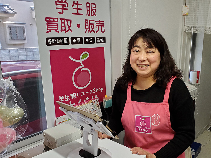 さくらやは、平成29年7月に創業した学生服のリサイクル(リユース)に特化したショップです。卒業などで不要になった学生服や身の回り品を買い取り、クリーニング、補正を行って販売しています。また、数は少ないながらもハンドメイド商品や菓子類の小売も行っています。学生服専門のリサイクルショップは地域では新しい試みだったこともあり、地元メディアからも取材が殺到し知名度が上がったことで、お客様が増え人気店となっています。