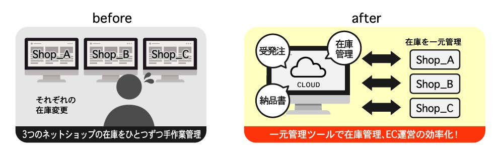 【効果】 一元管理ツールで在庫管理、EC運営の効率化