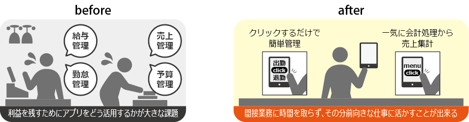 もっとも、業務に役立つアプリにどんなものがあり、どのように導入して活用するかはよくわかっていませんでした。特に店舗を運営して持続的に利益を生み出していくためには、人件費をはじめとして経費を抑える経営が必須です。アプリを用いて、それをどう実現していくべきか、大きな課題でした。