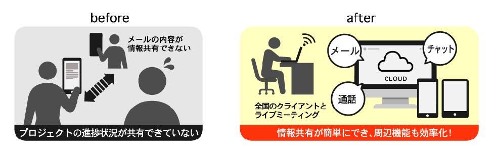 【効果】 情報共有が簡単にできるのと、様々な周辺機能で効率化