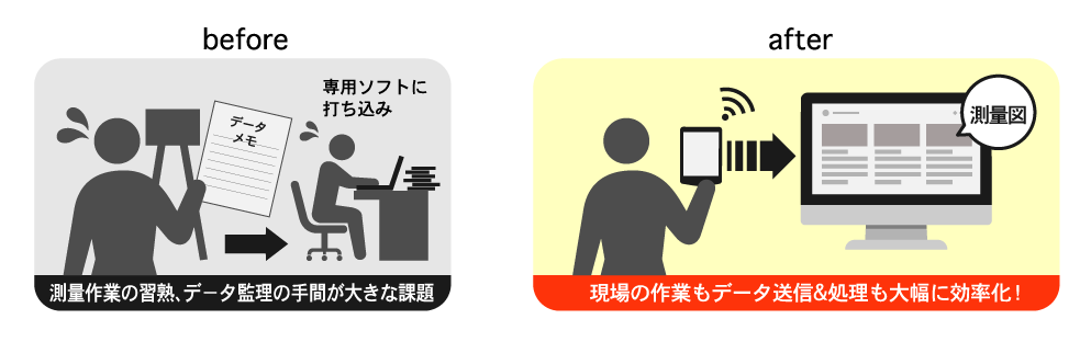 【課題】測量作業への慣れ、データ管理の手間に大きな課題が