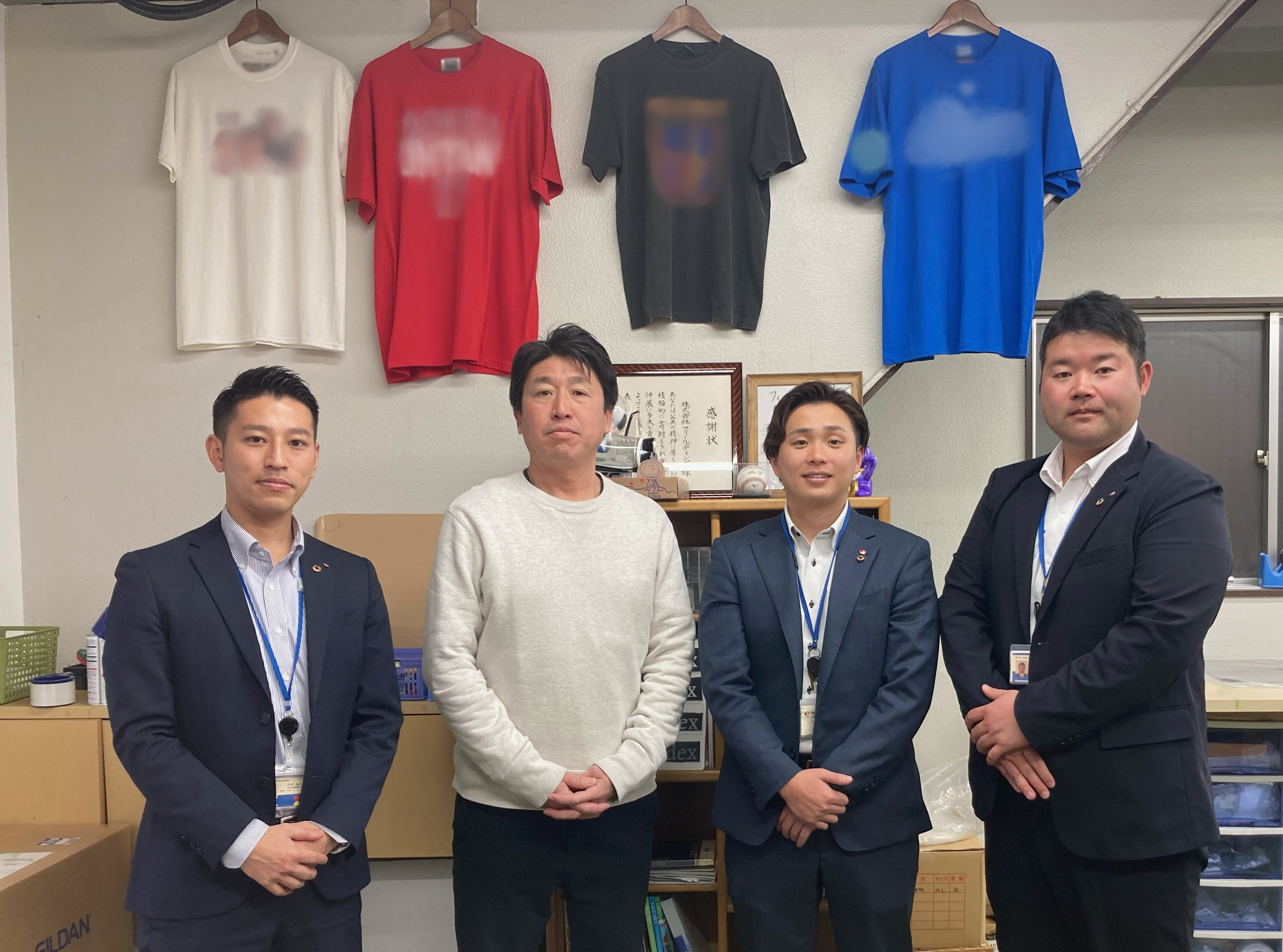 鏑木社長 「当社の主な事業は、お客様から依頼されたデザインをTシャツなどにプリントし、タグ付けまでを行う製造業務です。社員はパートを含め21名。中国の工場で生産した商品を卸売業者に供給する事業も展開しています。」
