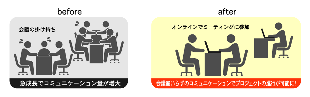 【課題】急成長に伴い、コミュニケーション量の増大が課題に