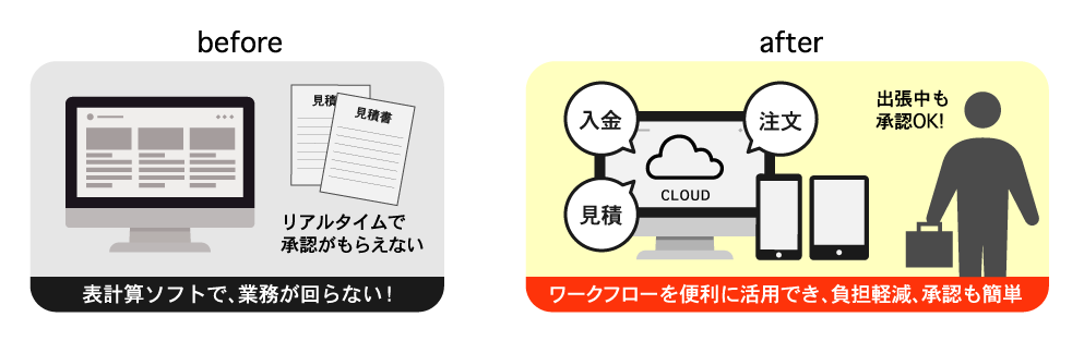 弊社は子会社なので、親会社とシステムを一緒に使うわけにはいきませんでした。創業後しばらくは見積書を表計算ソフトで作成していましたが、仕事が増えるにつれ、それでは回らなくなりました。見積書を毎回一から作成するのは大変です。また、ミスも起こりやすかったですね。さらに、弊社の講師やコンサルタントは出張も多く、見積書などの承認を紙に押印して運用していると、出張中は承認すらできません。この物理的な問題も解消したかったです。