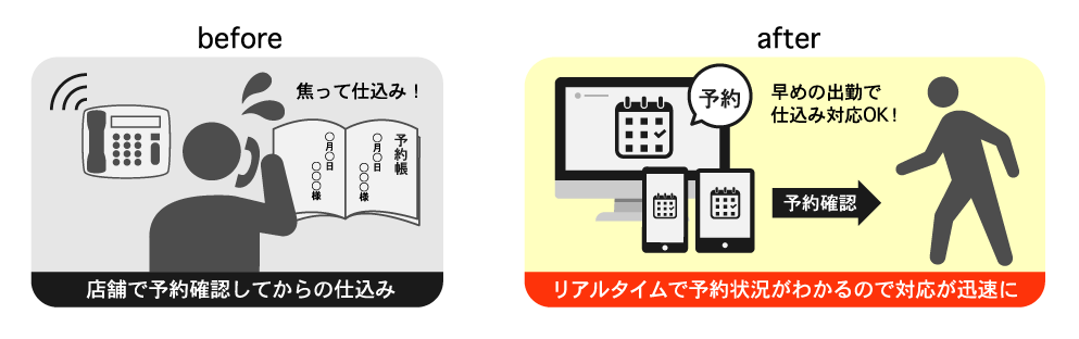 予約帳と違い、アプリでどこにいても予約状況が共有できるのがいいですね。出勤前でもその日の予約状況がわかるので、早めに出勤して仕込みを開始するなど、前もっての対応が可能になりました。入れる前は面倒に感じていましたが、実際に使ってみると「入れてよかった」と思うようになりました。お会計も、以前は手書きで計算していたのがボタン1つでできるようになり、わざわざキャッシャーができる人を用意しなくても、誰でも負担なくこなせるようになりました。