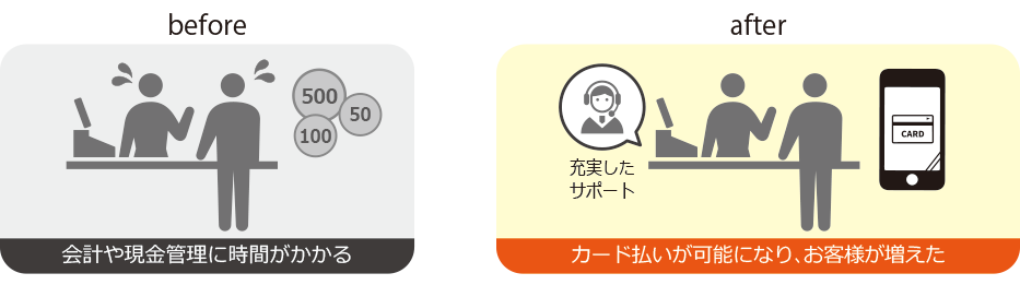 【課題】カード払いの要望は多かったが、決済手数料や導入費用がネック
