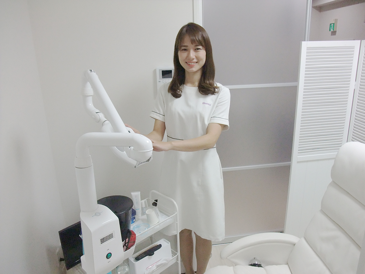 当院が行っているのは、薬品を使わずにできるセルフホワイトニングです。歯医者さんの医療ホワイトニングとは違います。美容ホワイトニングというイメージです。薬品を使わないため、小学生でも施術が可能。小学生から70代の方まで、幅広い年齢層の方にご来店いただいております。中でも一番多いのは、30代の女性です。歯医者さんのホワイトニングは敷居が高いですが、当店で行っているセルフホワイトニングは気軽に受けてもらえるようにしています。歯医者さんのようにしみたりしないですし、費用も1回4,900円程度とご利用いただきやすい設定にしています。