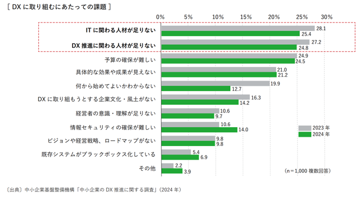 また常に言われていることですが人材不足が続いています。全般的に人材が採用できない中小事業者が多い中、デジタル人材を確保しようと言われても難しいケースが多いです。