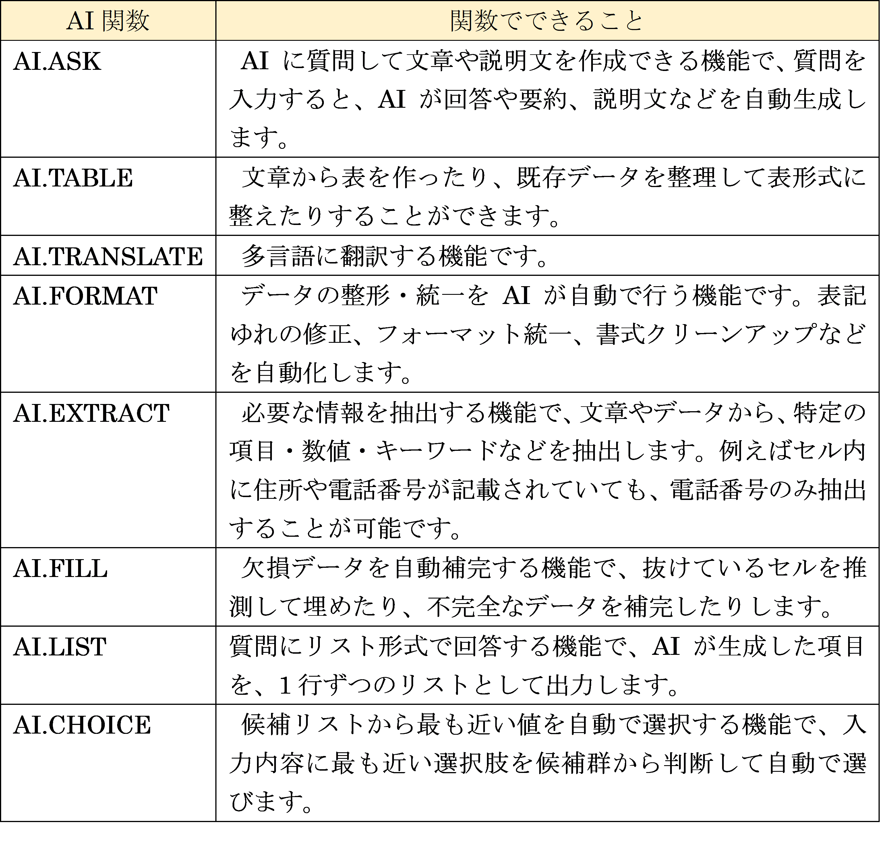 AI関数が表計算を変える?