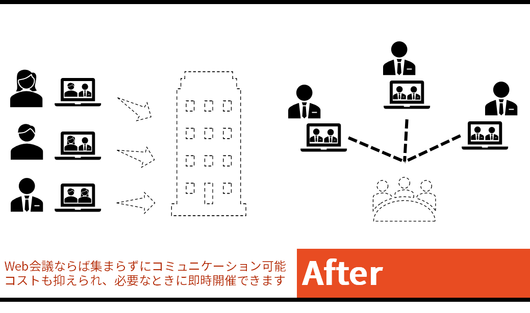 Web会議を活用することで、場所にとらわれない活動を促進でき、従業員にとってもお客様にとっても、より負担の少ないコミュニケーションができるようになります。今後も、実際に会って対面で話をすることがなくなるわけではないですし、その効果や重要性は評価されるべきですが、逆に非対面でのコミュニケーションにも大きなメリットがあり、評価されるべきものです。事業活動の場面ごとに、最適なコミュニケーション手段を選ぶ中で、ぜひWeb会議という選択肢を加えてください。