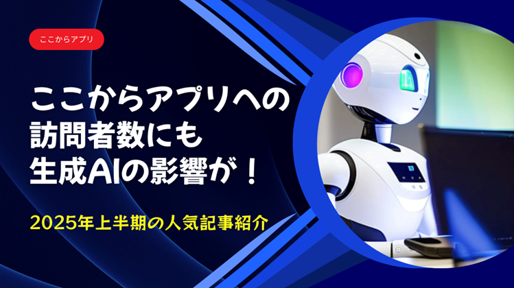 検索AIが登場して、Webサイトの多くが影響を受けていると思われます。ここからアプリのサイトへのアクセス状況を確認しながら、どのような影響が出てきているのか検討していきます。また、ここからアプリでは、中小企業のデジタル化に関する記事を継続的に発信していますが、どのような記事がよく読まれているのか、2025年上半期のランキングを発表します。