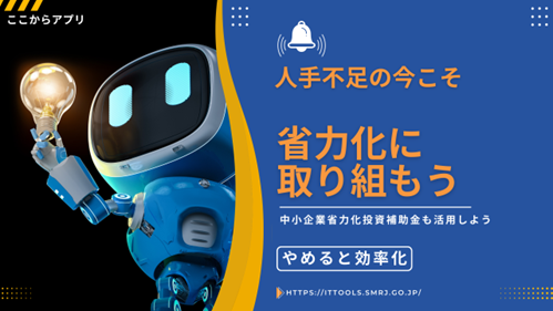 「人手不足で採用できない」、という声をあらゆる業会の方から伺います。少子化が続く中で、今後も人を増やしていくのは困難なことが想定されます。デジタル化やAI、ロボット等を活用し、省力化に取り組むことで改善してみませんか。