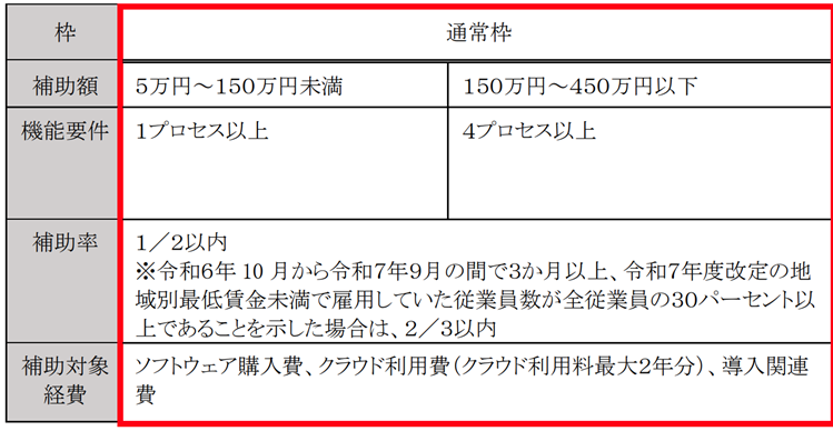 通常枠の補助額や補助率、補助対象経費は以下となっています。