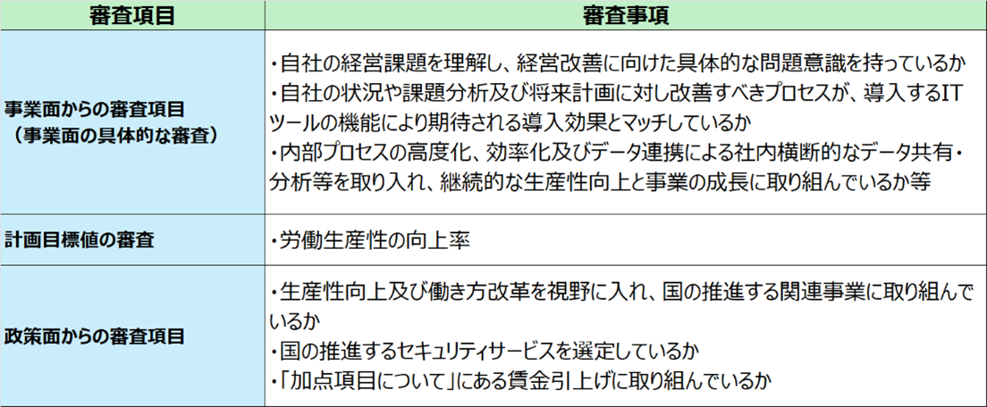 また、主な審査項目は以下のとおりです。
