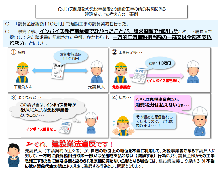 出典:国土交通省「インボイス制度後の免税事業者との建設⼯事の請負契約に係る