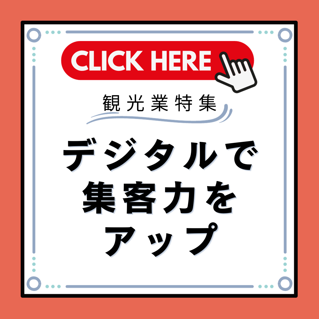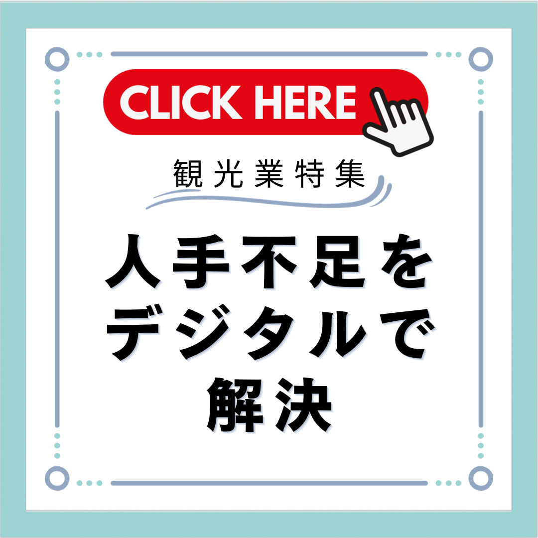 現在、観光業では、人手不足への対応や売り上げ向上等のため、デジタル化が急務となっています。本特集では、デジタル化を成功させた事業者の事例や必要なアプリなど、観光業経営に役立つ情報をご紹介します。今こそデジタル化により、お客様だけでなくスタッフからも支持を得られる観光業経営を目指しましょう。