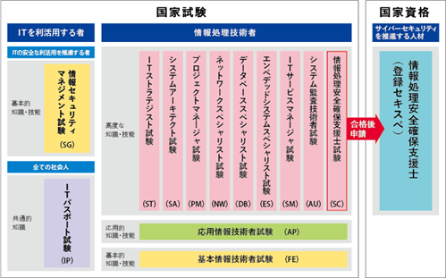 デジタル系の国家資格はIPA(独立行政法人 情報処理推進機構)によって体系的に提供されています。