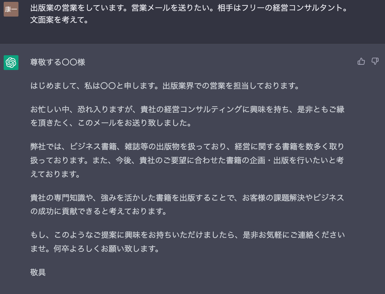 具体的な「指示」をすることで、自身が行なっていた業務を代行してもらうことも可能です。例えばメールを書く際に、初めから書くのではなく、必要情報を与えて案を書いてもらうなどの使い方が可能です。